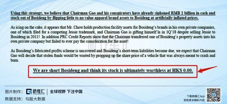 今日,沽空机构Bonitas发布的沽空报告称其财报、负债和并购等方面存在问题。Bonitas甚至指出,短期认为波司登股票的最终价值0.00港元,即一文不值。