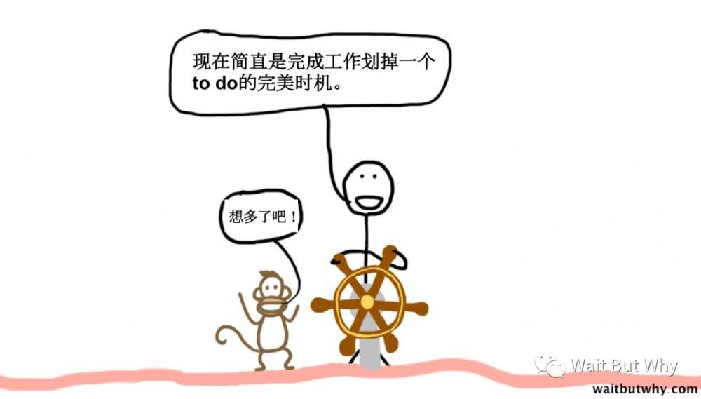 在猴子的世界里,它想得很明白——饿了就吃,困了就睡,千万别做任何有挑战的事情,那才是一只成功猴子的模样。可拖延症患者的问题在于,他恰好生活在人类的世界里,由及时行乐猴做出的决定是不符合人类世界规则的。但同时“理性决策者”的角色,日常只需要做出理性的决定,而不是处理控制权的竞争——他不知道如何和猴子进行有效的斗争,当拖延者被猴子掌控的次数越多,他就越痛苦,自责感也会越来越强。