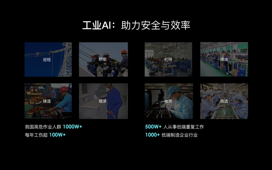 现在有很多高危行业依然在使用传统人力,比如到桥梁、钢丝上去检查缺陷等。这些工种其实都应该逐渐被机器取代,把人类从这些高危工作中解脱出来。这些场景都是我们要重点去发展的。