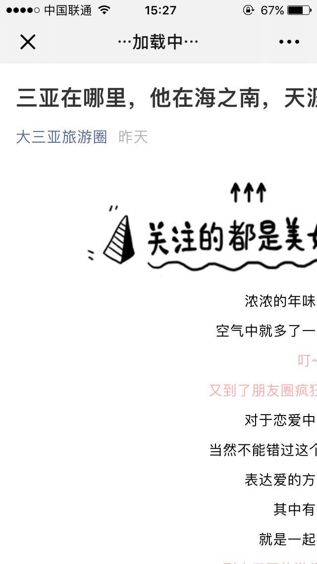“灰鸽叔叔”总结“所有作奸犯科的事情,都会有蛛丝马迹”。比如,骗子发来的广告文案链接里,最上方始终显示“加载中”,而“大三亚旅游圈”的蓝色字体始终无法点击。