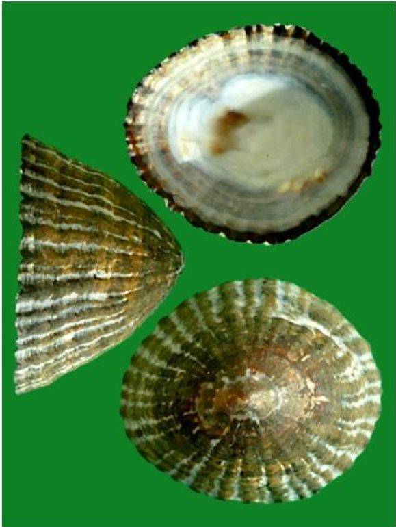 这是在山东荣成,胶东半岛一带。这种贝壳就是斗笠状的,它生活在潮间带的上部。潮间带就是涨水退去,退潮的时候露出来,靠上部的部分,它一天可能有20个小时都露在外面,这个贝壳就在这个上部生长。