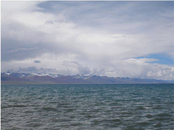 除了深海有螺以外,很高的山上也会有螺。这是纳木措湖,在西藏,后面是雪山,这个湖面就是4700米的海拔,要去这儿找螺?为什么要去这找螺呢?