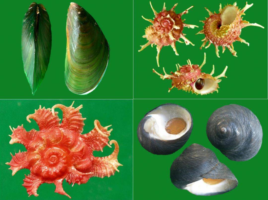 这么多贝壳广泛分布在世界各地,有陆生的,有淡水的,还有海生的。海里什么贝壳都有,有螺、双壳、鹦鹉螺、象牙壳、石鳖,然后它们进入淡水以后就只有腹足纲了,像田螺和河蚌。