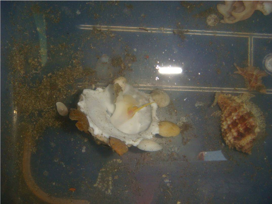 这是另外一种,瓷螺。这个螺让海星很不舒服,它也是寄生的。大家知道我们人体内也有寄生虫,它是软软的,但如果它是个硬的螺,寄生在人体内,听起来很难受吧?