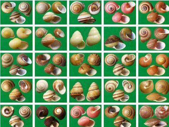 这都是贝壳,有海贝,也有蜗牛壳。蜗牛壳跟海螺都是贝壳,而且它们亲缘关系还蛮近的。
