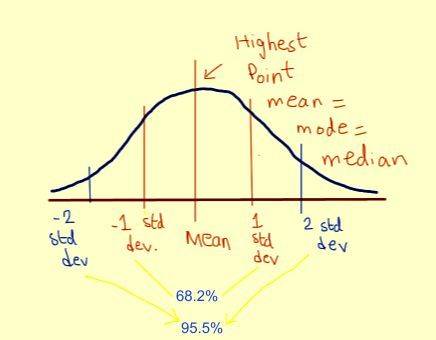 正态分布是只依赖数据集中两个参数的分布,这两个参数分别是:样本的平均值和标准差。