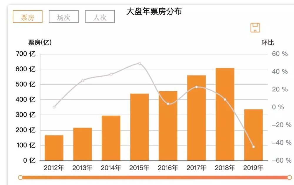 2012年-2019年大盘年票房分布(数据来源拓普)