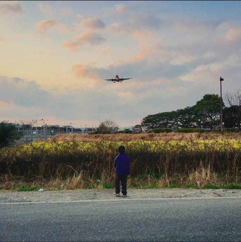 大四的秋天,我每天从下午6点到晚上11点在机场打扫机舱。那一阵我一边打工一边准备升学考试,经历课业和经济的双重压力,这是在去机场的路上拍的。路左边是油菜花地,右边就是铁丝网隔开的机场。傍晚总是有稀稀落落的人出现在那里,看着巨大的飞机飞向天空。这个小男孩几乎天天都来。