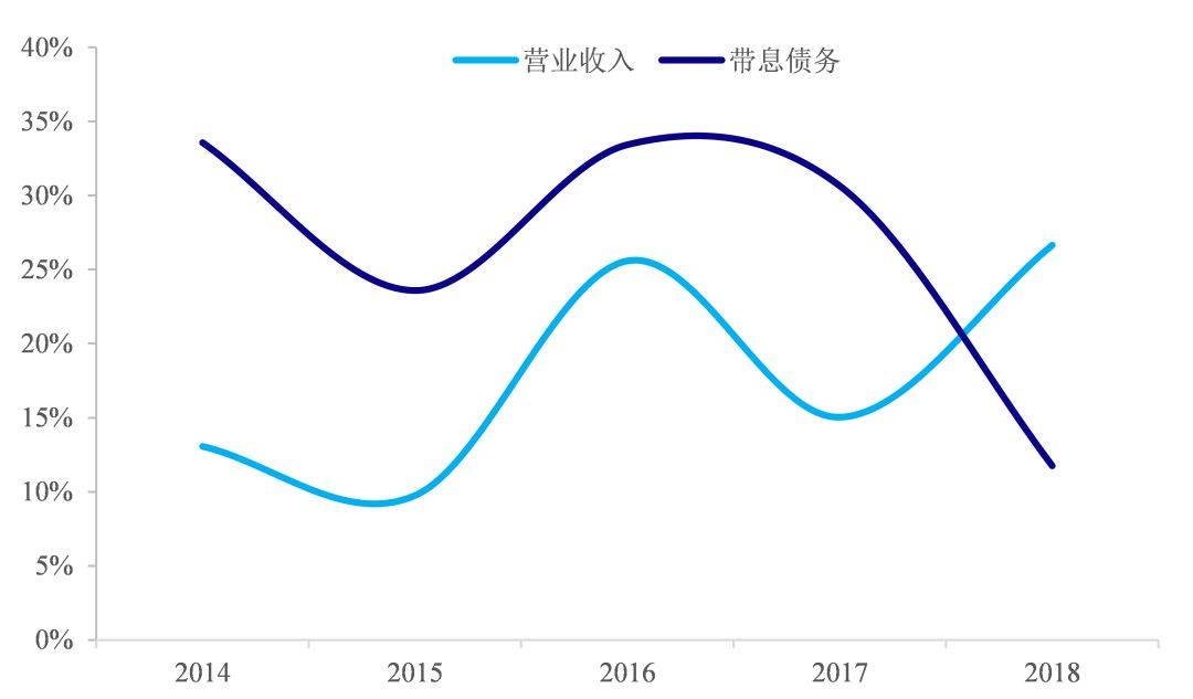 两端承压之下,财务杠杆渐显疲态,部分房企开始寻求其他渠道。样本数据显示,2014-2017年间,房企的营收规模增速和带息债务规模变化较为同步,但2018年已经开始出现分化。