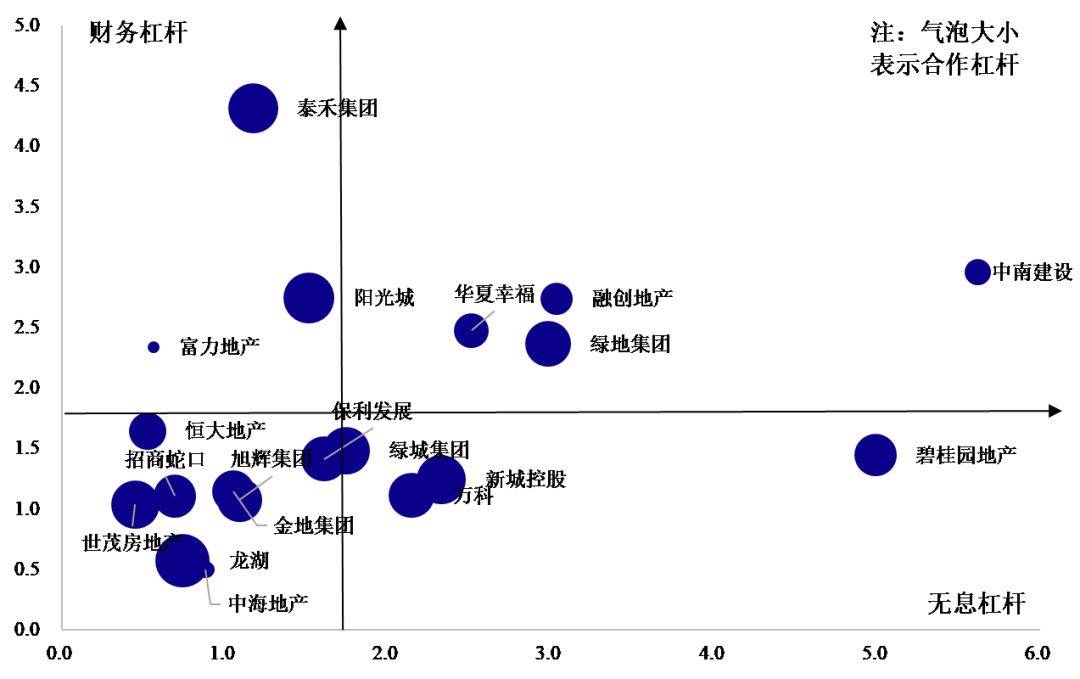 通常来说,合作杠杆过低,会过低会使得房企拿地难度加大,过高又会使得销售水分太多。