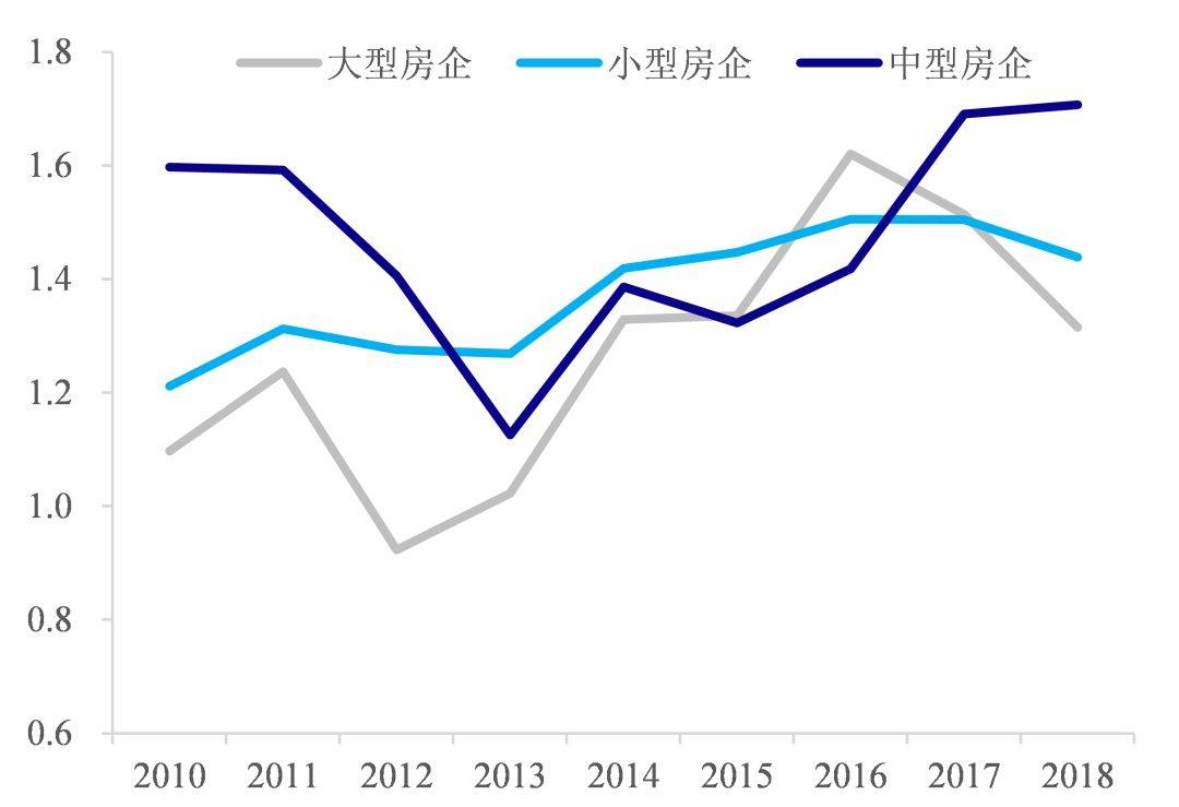 注:其中大型房企定义为2018年克而瑞口径销售额2000亿元以上的房企,中型房企定义为2018年克而瑞口径销售额1000-2000亿元的房企,小型房企定义为2018年克而瑞口径销售额1000亿元以下的房企,大、中、小型房企分别有10、16、66家。