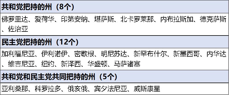 在美国选举传统上,有些州对政党的支持是非常稳定的。比如加州历来都是坚定地站在民主党这边,而德克萨斯州则稳稳地把自己的选票交给共和党。