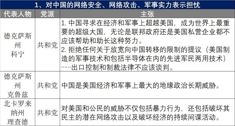 50位参议员中,有28位(占比56%)参议员对中国的网络安全、网络攻击、中国军事实力的发展表现出担忧。