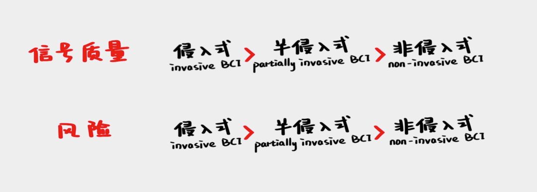 一般来说对脑部侵入程度越高,获得的信号质量和强度就越高,风险也更高。
