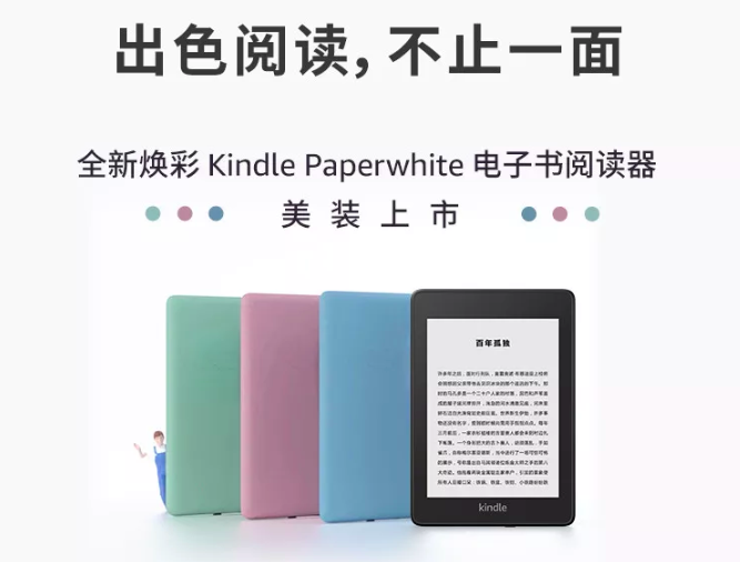 7月25日,亚马逊Kindle推出全新焕彩Kindle Paperwhite,在原有墨黑配色的基础上增加了雾蓝、烟紫、玉青配色,其中烟紫和玉青配色专为中国用户定制,新品除配色外其他配置和普通版保持一致。售价方面,全新焕彩Kindle Paperwhite 8GB版售价998元,32GB版本售价1258元。