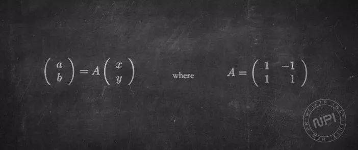 虽然上面的方法可以轻松地解决这个问题,但它很难将其推广应用于解决包含更多未知数的问题。要做到这一点,我们就需要矩阵和线性代数了。这些问题背后的数学原理是于19世纪由凯利(Cayley)发展的,当时他在考虑如何让一组数字线性映射到另一组数字。我们再以上面的年龄问题为例,假如我们设x-y=a, x+y=b,那么这就等于完成了从(x,y)到(a,b)的映射。凯利用矩阵方程的形式来表示这种映射。
