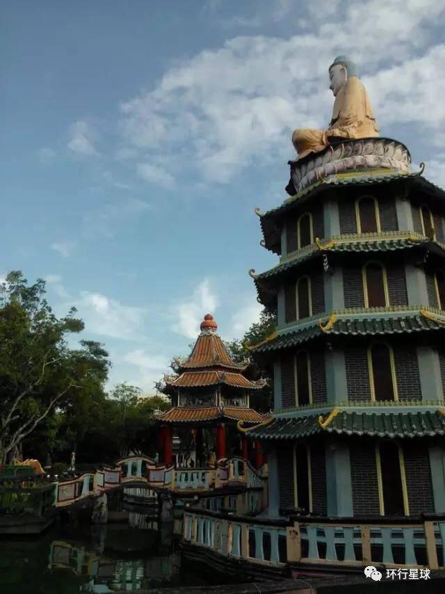 难得有一处景色仿佛有一丝丝宁静和谐的感觉,但是这个全园最高的建筑物,塔顶佛祖,需要重点介绍一下。一到晚上,这个佛祖就会被打上绿色灯光,搞的我一度从虎豹别墅地铁站出来之后需要从惨绿惨绿的佛祖眼皮底下溜走,因此吟出了开头的千古名句。