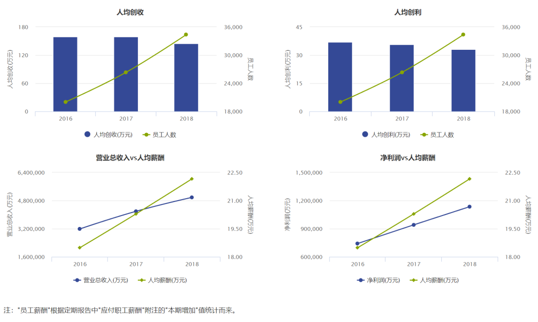 与此同时,海康威视的费用率却是历史最高:海康威视上半年的销售期间费用率是26.41%,一季度为28.74%,为上市以来的最高点,增速高于毛利率的提升幅度。另一方面,公司员工人数及人均薪酬均快速增长。人均薪酬高于营收和利润的增长,且人均创收在下降。