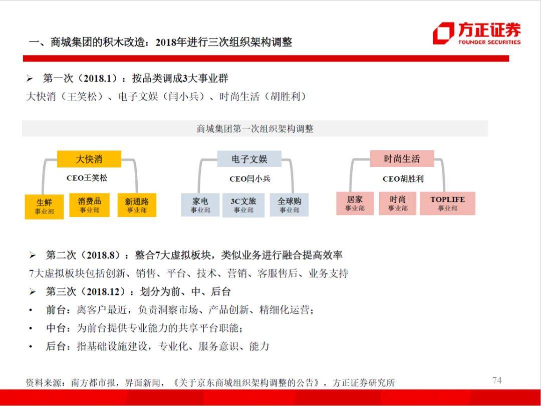 京东的第一次管理革命发生在上市前后(2012年),公司大量引入职业经理人并对高管充分赋权,后续刘强东再次亲自管理商城集团,并在核心岗位任命管培生。