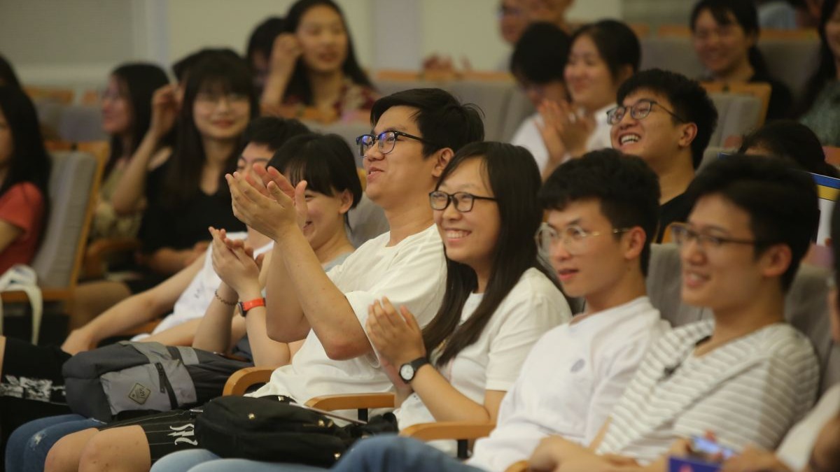 题图:6月25日,由滕华涛执导,江南同名小说改编,鹿晗、舒淇领衔主演的科幻战争电影《上海堡垒》开启北京站校园路演,学生在鼓掌