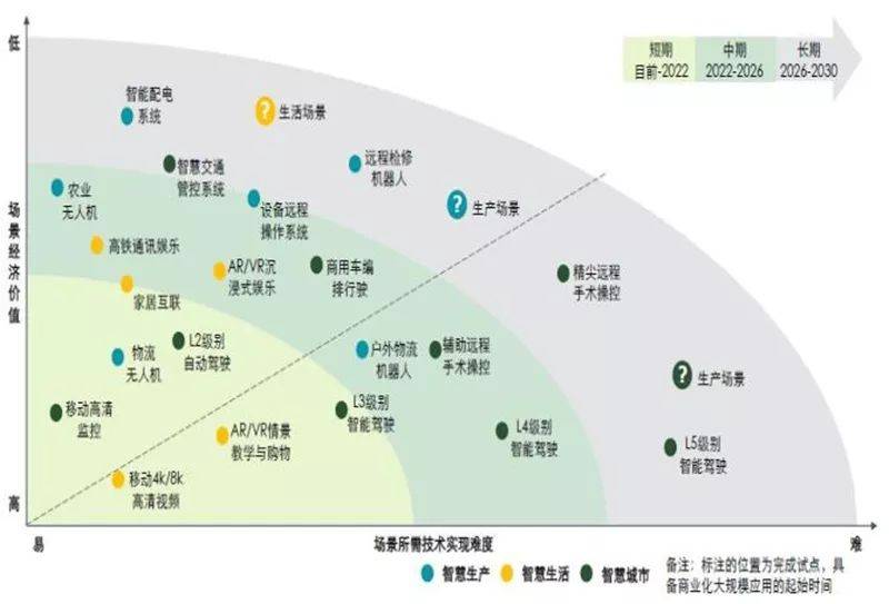 ▲中国移动基于时延与速率指标筛选出的5G应用场景示意图