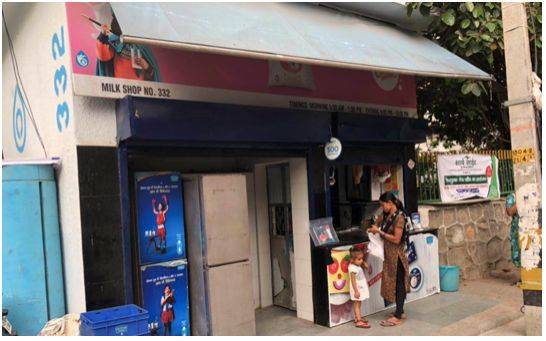 第一种:是由牛奶品牌直营的鲜奶门店,如图片中的德里NCR的Mother Daily,这类门店一般面积10~20平左右(会外延一些面积)主要由两个冰箱组成,里面sku主要包括不同牛奶、一些奶制品、以及少量的早餐品类,营业时间一般是早上和晚上两个时间段。