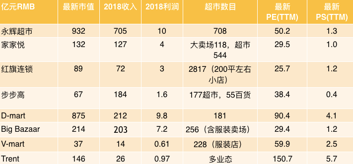 Tips2:中印连锁业态上市公司状况与估值对比(公开市场资料搜集整理,后四个为印度公司)