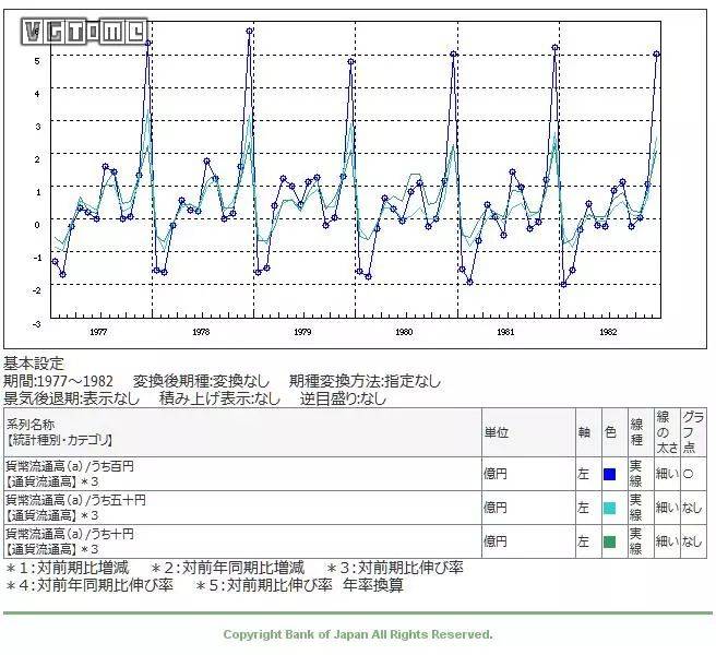 但硬币流通量的算法,是“硬币发行量 - 硬币回收量”,和铸币量完全是两个东西。从日本银行“时序统计数据检索网站”得到的图表来看,就算只观察流通量,1979 年整体上也和其它年份差别不大,没法成为决定性的证据。