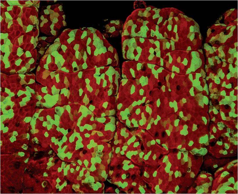 ▲研究人员们使用绿色荧光蛋白标记不同的细胞,追踪它们的移动(图片来源:参考资料[2])