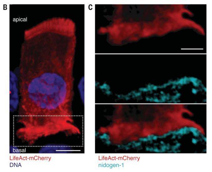 ▲细胞骨架蛋白会让上皮细胞伸出“小脚”,一步步往上爬(图片来源:参考资料[1])