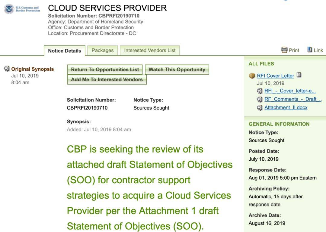 CBP的“云服务提供商”竞标页面