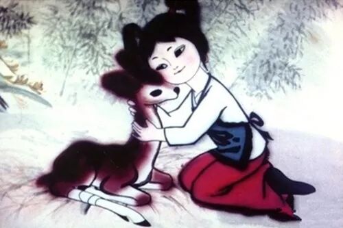 再往后就到了1982年,我们的海派书画画匠程十发先生作为美术设计,参与到了第三部水墨动画《鹿铃》的制作中;
