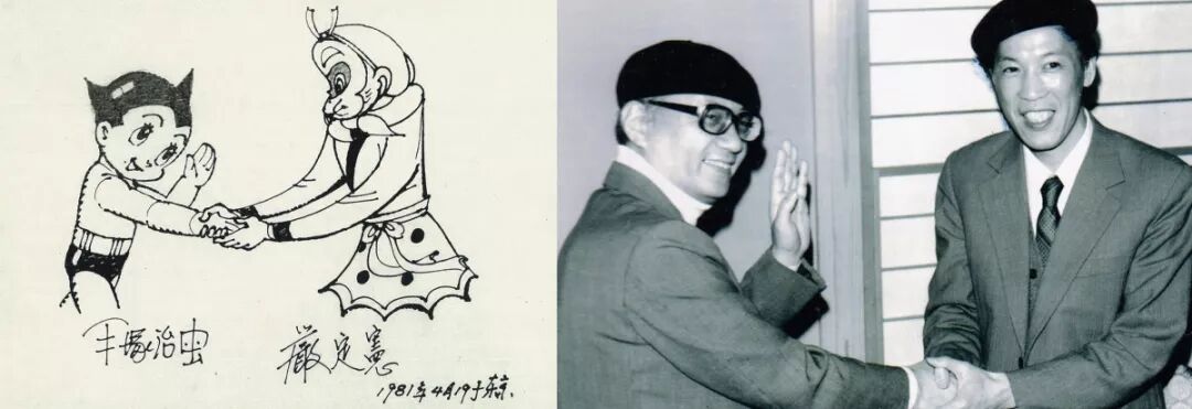 1980年,手冢首次访华,第一站便是来到美影厂拜会万籁鸣先生,当时还跟我们万老说,就是因为您的动画,我才走上了这条道路。