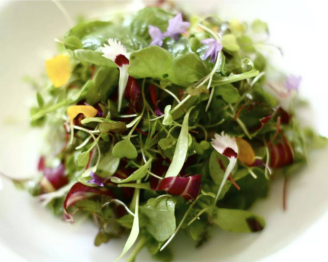 还有一些沙拉里会用到的迷你菠菜、迷你芝麻菜等等,其实也是没成熟的菠菜苗和芝麻菜苗,个头小,口感也更嫩一点,不塞牙。这类菜苗在英语里被统称为“micro greens”,看起来有点像我们经常吃的香椿苗。