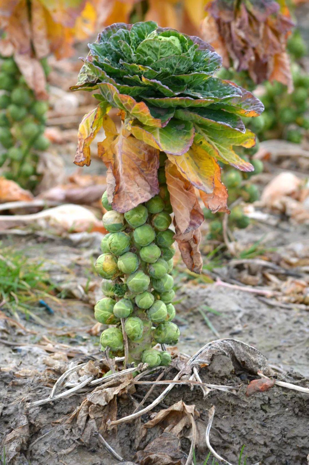 尽管在菜市场看起来只有尺寸上的区别,然而抱子甘蓝和卷心菜在田间地头的长相却大相径庭,一看就只是远房亲戚。