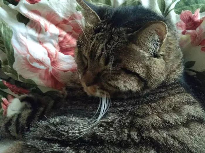 可高姐的好名声已经在小区的流浪猫群体间传播开来,所以即便高姐宣布不收猫,依旧不时有猫到高姐的小院里来观望碰运气,万一呢?其中有一位花猫,每天早晨准时报到,吃完高姐放在院子里的猫粮后,在一边倒头就睡,一直睡到日头偏西才走,真正做到了准点打卡上下班。有时高姐在院子中浇花,他还过来蹭蹭裤脚,翻翻肚皮,大胆卖萌,小心求收。只是高姐一直狠心,没做表态。