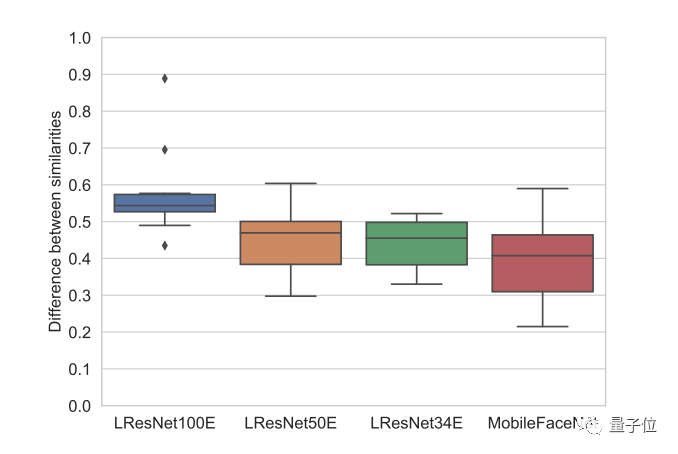 LResNet100E等模型基线相似度和被攻击后的相似度之差