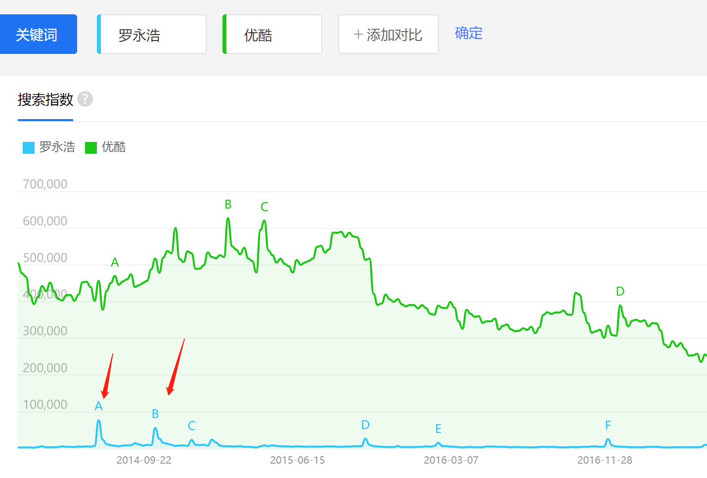 (图)两个箭头对应的日期,分别是Smartisan T1发布以及8月27日约架的百度热度