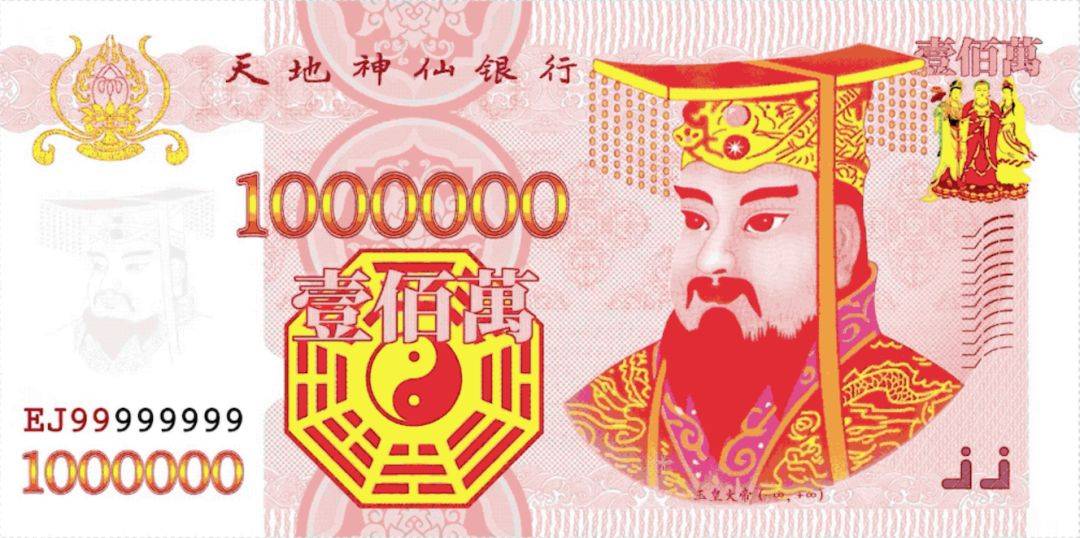 最有难度的其实是设计这种长得像人民币的纸钱。我的同事花了大概十几个小时,在Photoshop里设计了一张冥币。