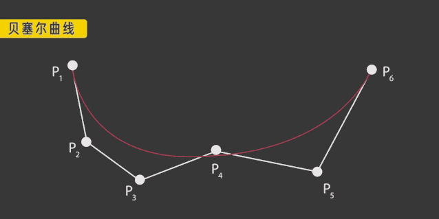 贝塞尔曲线大概是这个样子。Photoshop里面的钢笔工具用的就是贝塞尔曲线,它通过几个锚点确定一段曲线,生成过程大概是这样。