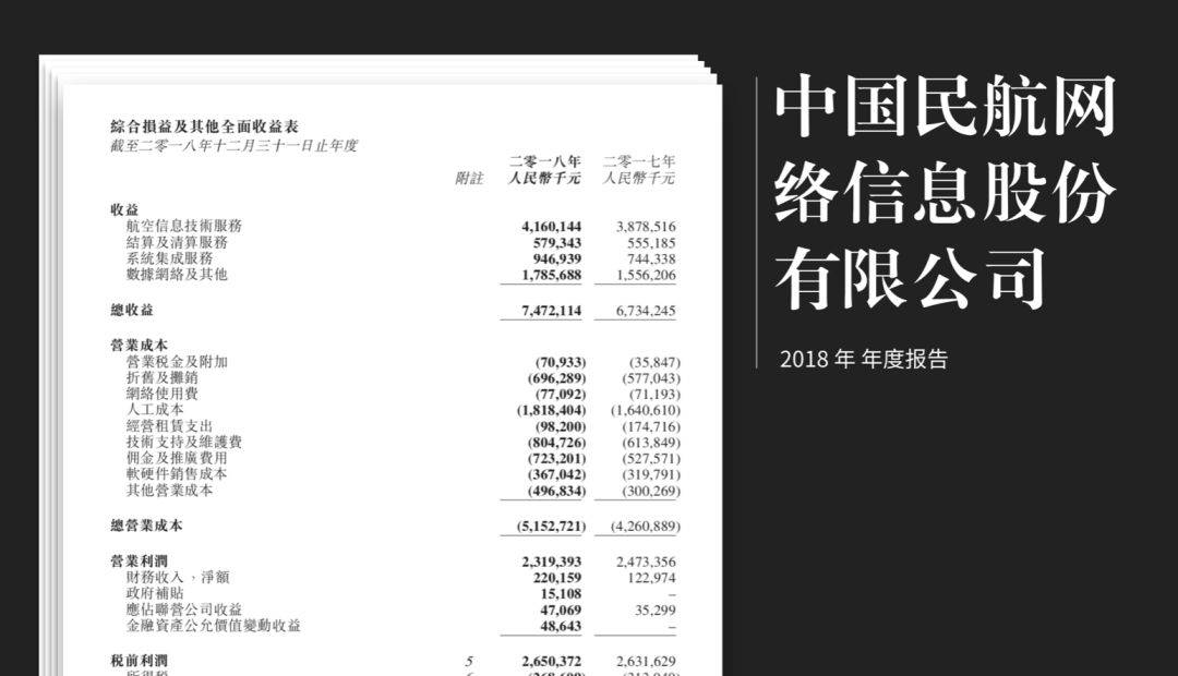 除了政府的文件,我们还可以看到上市公司的财报。可能大家没有听说过这家公司,叫中国民航网络信息股份有限公司,但是你买的每一张机票这家公司都会赚到钱。