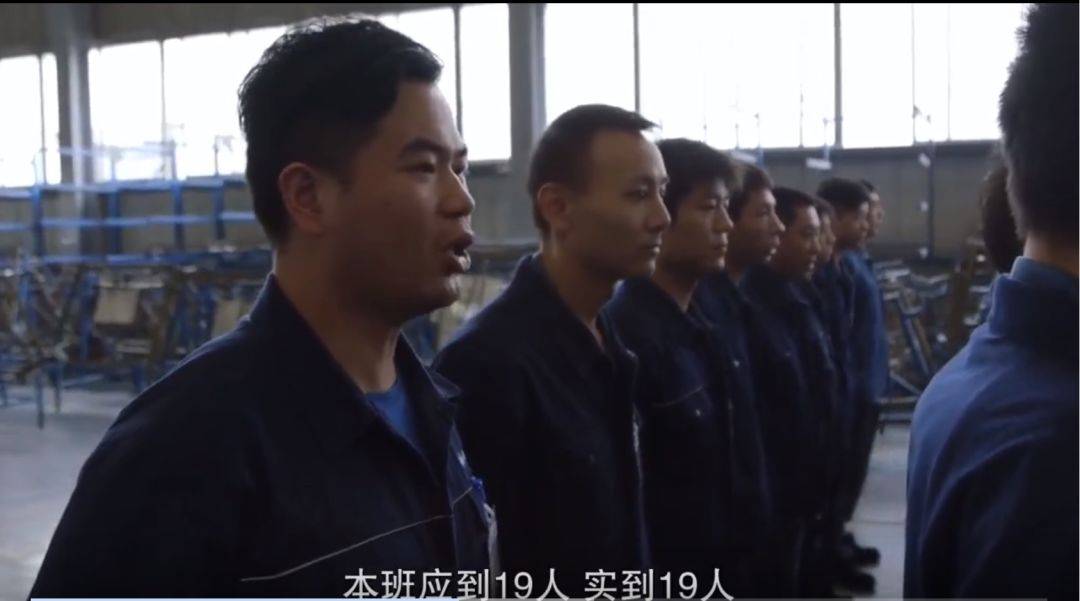 说回在单一场景上最为漫长的一段细节:美国中层来到中国参观。震撼了他们的两个场景:下班之后的军事化的下班操;尾牙。
