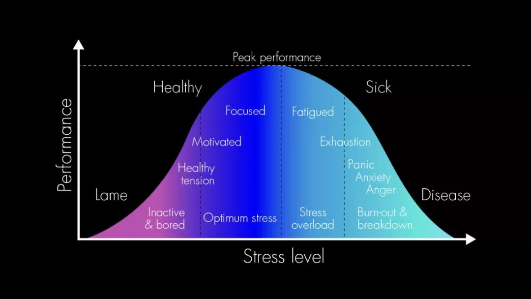 举个例子,我们的工作有一个截止日期,我们要在那之前提交成果,那会促使我们努力工作,并做出良好表现。这是好的压力,它会促使我们做一些事情,让自己再次达到平衡状态;