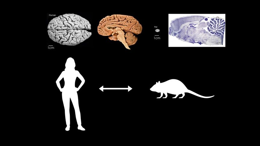 啮齿动物和人类都属于哺乳动物。两者大脑结构是类似的,虽然尺寸有很大的差异,而且不同脑区的相对作用也存在着一些差异,但总体而言,它们拥有类似的结构。