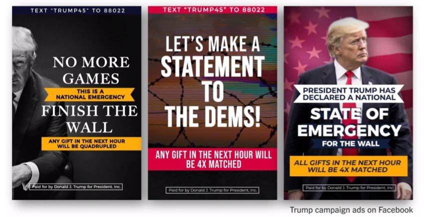 特朗普及其竞选团队在Facebook上投放的广告 资料来源:纽约时报