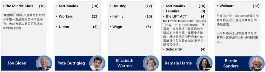 根据民主党候选人在二季度的推特内容分析,我们整理了五位候选人各自的竞选焦点。