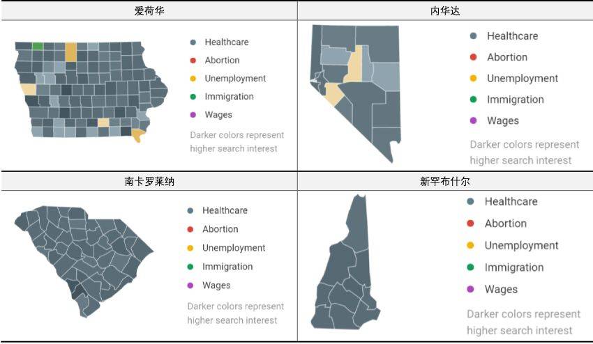 根据Google Trend统计显示,自6月20日至今,几乎所有摇摆州的搜索热度都集中在医保制度上。
