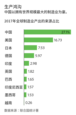 中国拥有全球27.1%的制造业