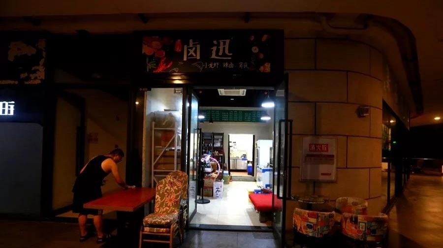 早上5点,金楠天街D馆,“卤迅”门口,陈爽正打扫卫生,准备打烊。