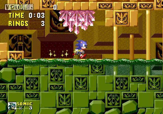 这种技术本身并不少见。比如在《刺猬索尼克》的一个关卡中,为了展现地下水淹没迷宫的场景,屏幕下半部分的颜色偏绿,就是调色的结果。